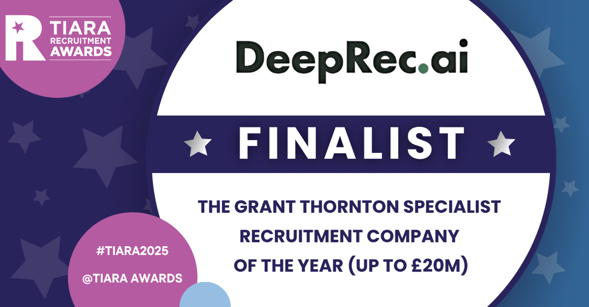 [London, 05/08/2025] DeepRec.ai is a proud finalist at 2025’s TIARA Awards! The annual Tiara Awards are the flagship celebration of excellence in the recruitment industry, a ceremony that recognises the highest standards of growth, innovation, and leadership.